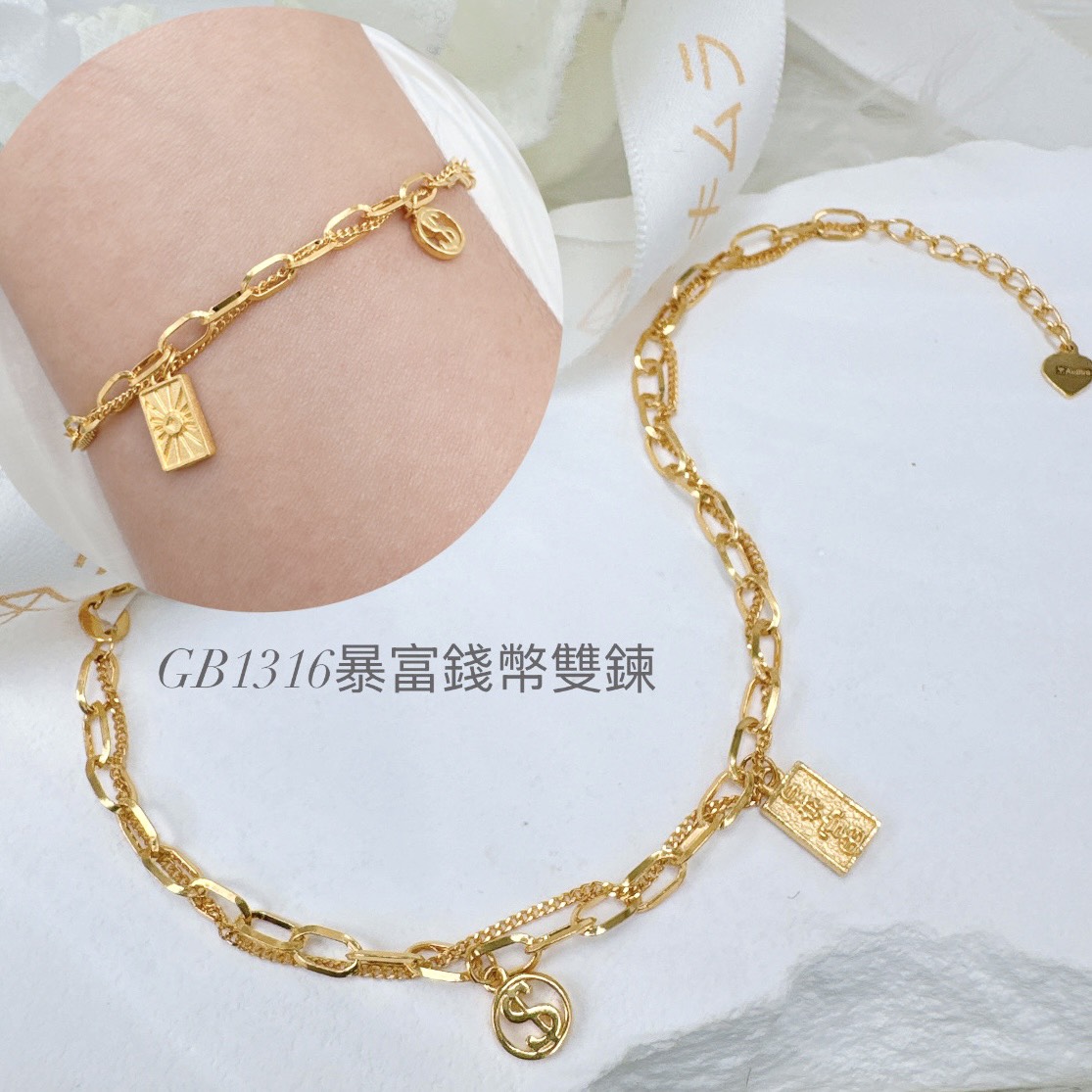 暴富錢幣雙鍊手鍊