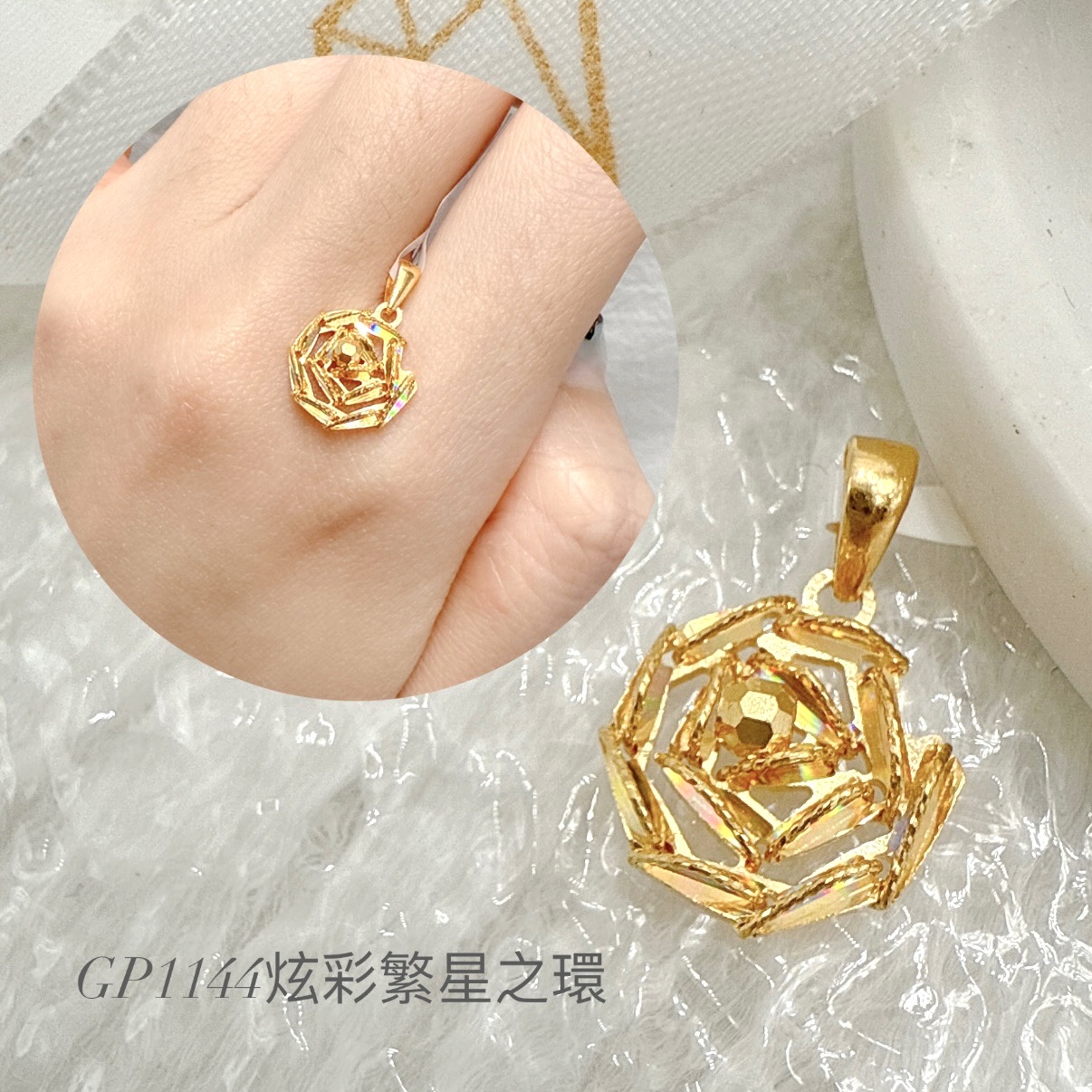 純金呈天然金黃色,因表面處理工藝不同,亮度會略有差異。